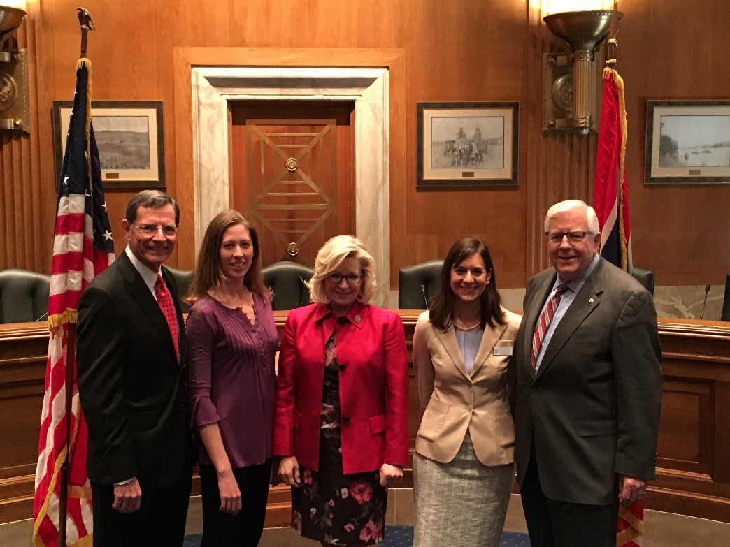 At the Water Week National Policy Fly-In, Carol Kinzer, engineer and WEF young professional (second from left) had the opportunity to meet with the congressional delegation from her home state of Wyoming. She met Sen. Barrasso (R–Wyo.); U.S. Rep. Elizabeth Cheney (R-Wyo.); Dena Egenhoff, water conservation and public relations specialist for the City of Cheyenne (Wyo.) Board of Public Utilities; and Sen. Mike Enzi (R–Wyo.).